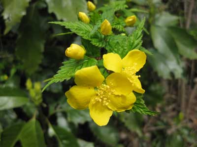たきがはさん、こんばんはです~。 お邪魔致します! 植物と聞いて、しゃしゃり出て参りました。 わかる植物の名前、書いてきますね~。 (書いてないだけで、もうご存知なのかもですが(^^;)) これはたぶん(ってオイ!)山吹(ヤマブキ)ですね~。 園芸種は八重のが多いですが、どちらもステキですよねv