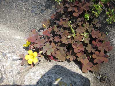 撮影日;2009/4/6撮影場所:茅ヶ崎科名:カタバミ科学名:Oxalis corniculata var. rubrifolia参考文献:「FIELD GUIDE 4 日本の野草(春)」